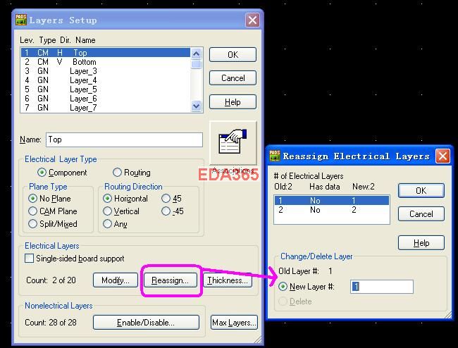 可以到Layers setup中Reassign Electrical Layers,但这个修改是把整层的走线都改掉了