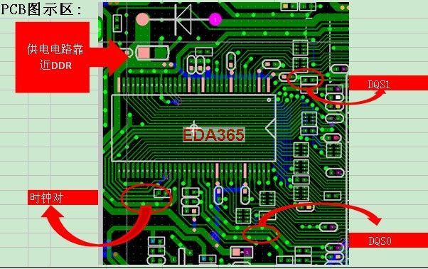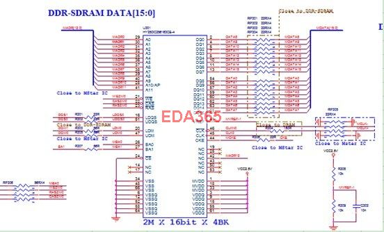 上图DDR_I电路中需要注意到信号线有CLK+/-,DQS0/1等.
