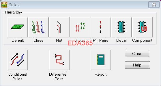 PADS 规则设置, decal component 这两个规则设置好像不起作用。不知道是什么问题。 default class net group pin pairs。这些正常。