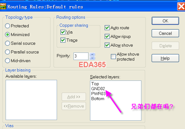 四层板在走线状态下加个通孔按l4,不知道为什么刚刚可以现在又不行了,好像是一层和二层锁定了吧,你知道怎么解除锁定呢