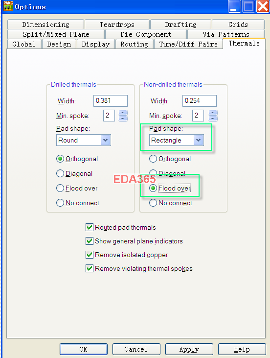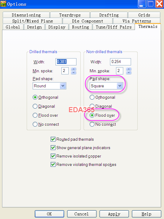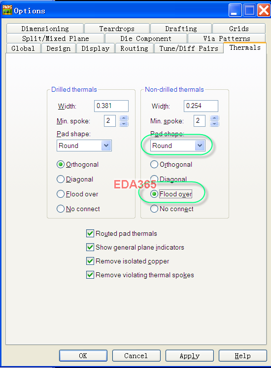 可以在Tools-Options-Thermals里将pad shape里选择需要满铺的焊盘形状然后选择flood over确认再进行铺铜就可以了