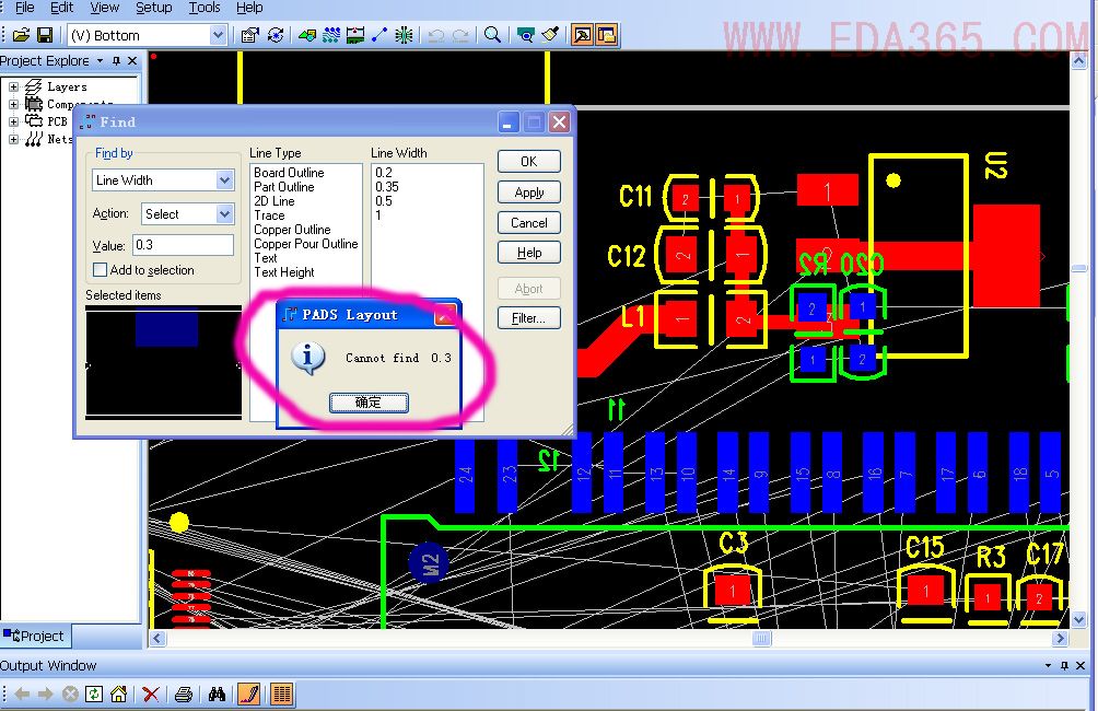 我在规则中所设定的最大线宽为3MM,DRC且在关闭状态,按照5楼youyou058的方法还是不行,并出现“找到不字样的对话框”,如下图所示, 另我用的是PADS2007版本。