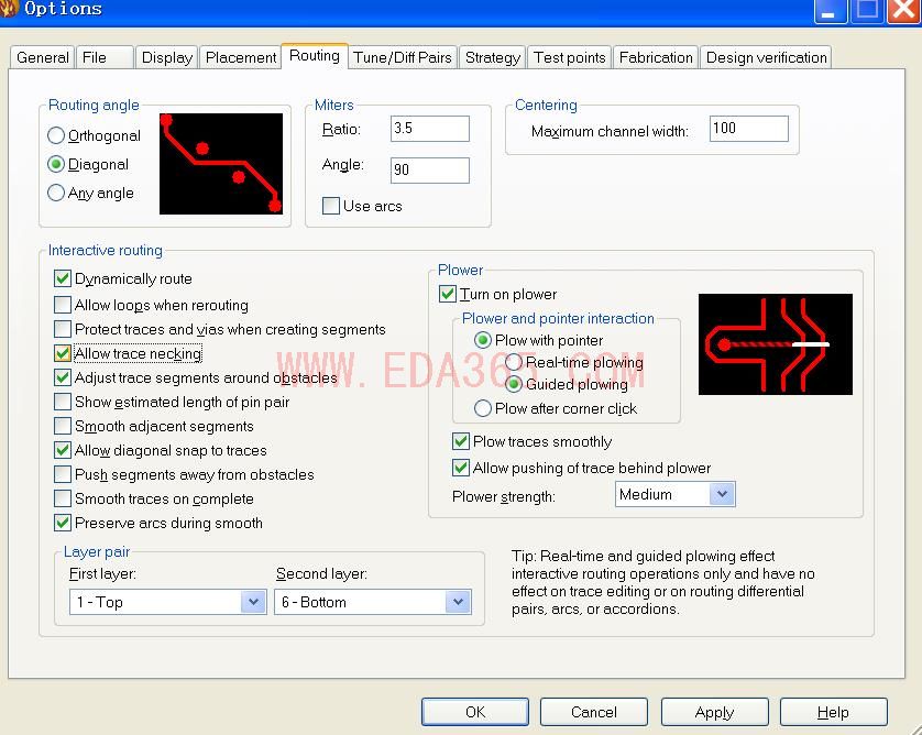 看了多拉@梦发的router教程,里面提到布线时可以自动适应线宽,例如把线宽设置得很大,比引脚宽度还大,在拉线的时候可以自动以引脚宽度拉出,然后又可以自动转为比较宽的线,在经过lc两个引脚之间比较细的地方又可以自动调整线宽,这种画法怎么实现?