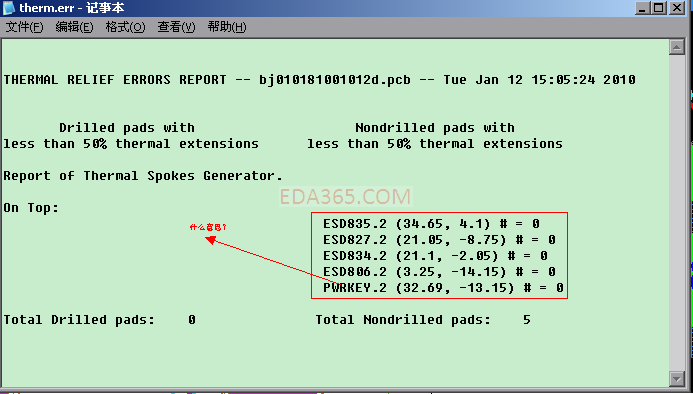 这个报告不能被看作错误报告,只是报告了当前文件中有多少钻孔焊盘和不钻孔焊盘有多少不满足在options =〉thermals 中的设置。不满足不一定就是错误。