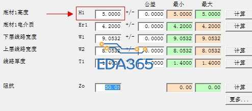 四层板,四层走线,top层天线阻抗匹配50ohm,用si8000计算的时候,底材高度要如何确定呢