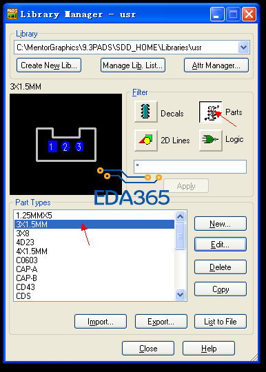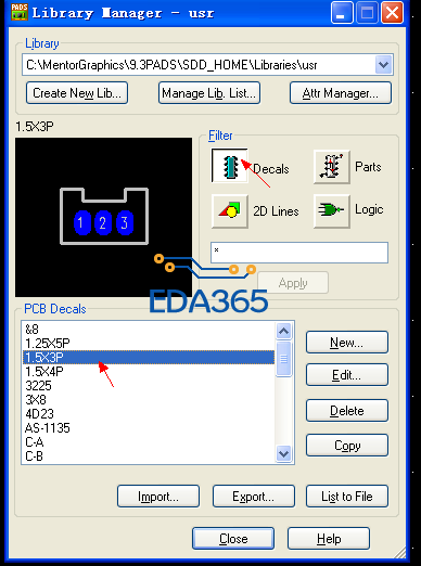 上图是Parts为3X1.5MM 而Decals中命名为1.5X3P。