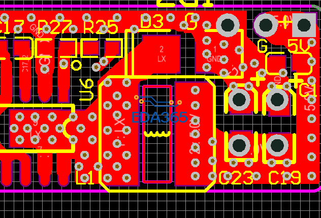 我有打孔的,0.3MM的孔,铜皮也有的,怀疑电感小,我换了470UH的电感,产热量没有太大的改善的,加大电容也是一样的。占空比是在正常的水平的,45%的样子!