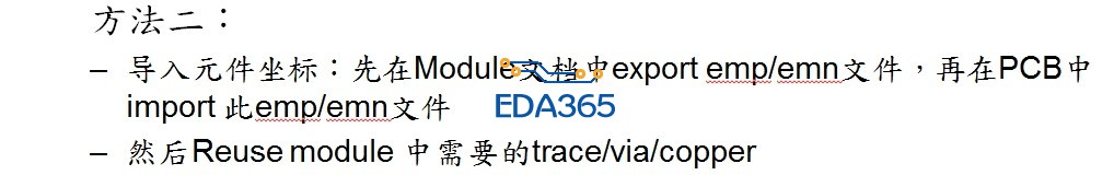 那意思就是说,我在一个新文件里,想复用一部分之前文件的走线,例如cpu到ddr,或者一个模块,例如电源模块的话,只能用add reuse的功能了是吧。