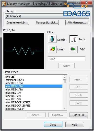 那個Parts & Logic,就以電組包裝....兩個都有一樣的符號看到內建零件庫光是電阻瓦數樣式