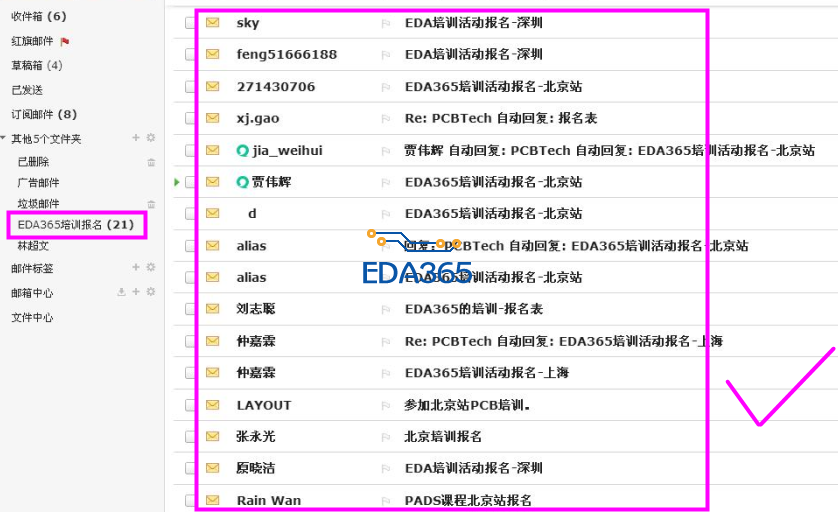吉迷哥:是的。北京的朋友发送的邮件主题用:EDA365培训活动报名-北京站