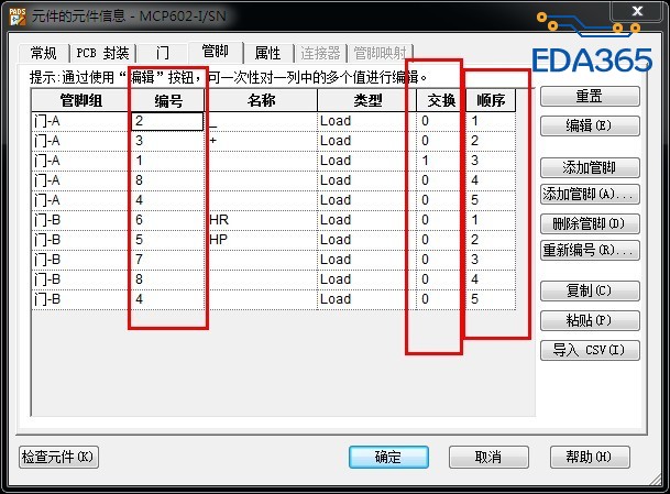 各位大侠,询问个问题,如图,第2列的“管脚编号”好理解,最后一列的“顺序”和“管脚编号”有什么联系和区别,“交换(swap)”表示什么,怎么设置,我现在想画一个有两个门的运放的库(MCP602),“顺序”列和“交换(swap)”列该怎么设置?
