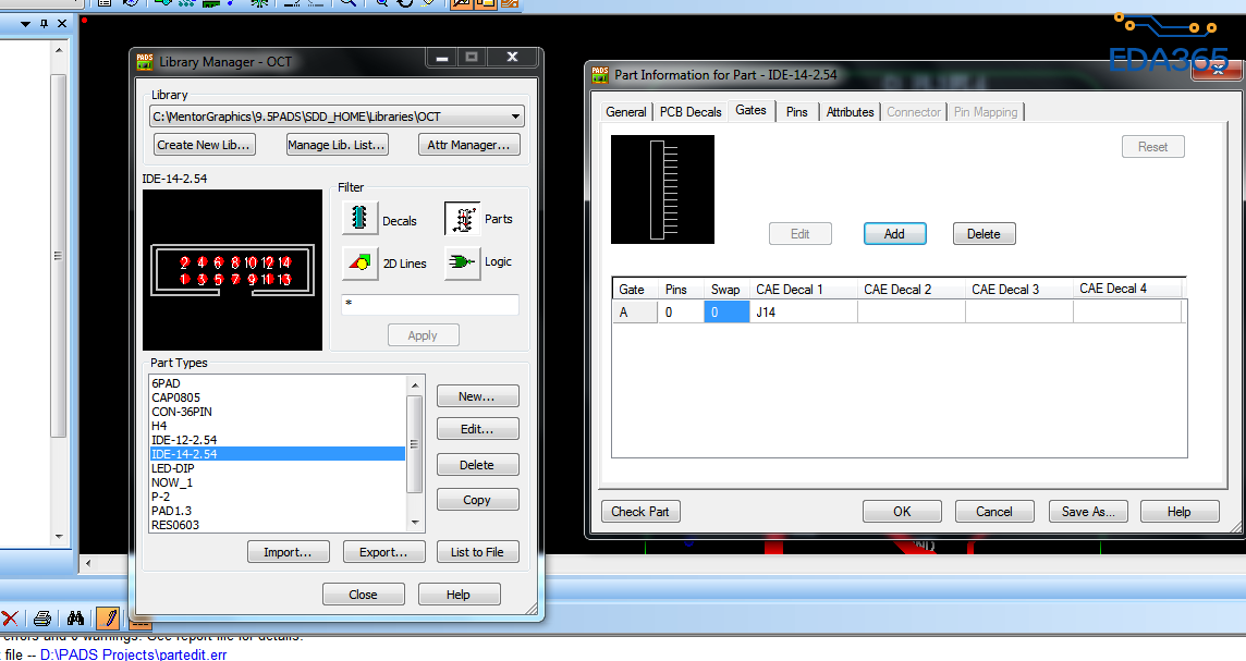 pins哪里为什么是0,pcb decal原本是有的,我就编辑了parts,给parts添加了logic,但是为什么这里管脚数不对呢