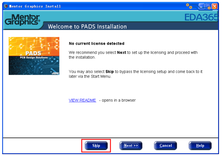 由于最近要使用PADS,所以在网上找了一个连接就下载下来了,但是安装的时候发现和和谐教程里面的界面不一样,没有和谐教程里面说的SKIP选项,一头雾水,看了一下英文的意思,选择了 NEXT选项,后面的就安装教程里面的详细步骤安装的。