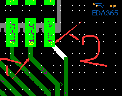 如果硬要解释为什么要求按方式2走线,是因为线的两个边沿与焊盘都成钝角,而方式1是直角,而且方式2可以少拐一个弯。但是一般来讲,只有第一个焊盘可以按照方式1走线,后面的焊盘如果按照同样的方式走需要考虑线与焊盘的间距问题,可靠性可能会降低。