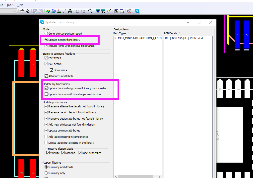 比如画好的一个PCB,我要把一个电解电容的丝印加个+极符号,首先我把PCB文件里选择原件编辑封装,修改过后保存。然后打开原理图文件重新分配我更改过后的封装,然后再ECO TO PCB ,同步过后PCB里面还是显示的我更改该之前的封装?不知道是为什么?但是我在原理图里面查看原件的封装却是更改后有+极符号的封装,同步到PCB里面就是不显示,很奇怪,不知道大家是怎么修改原件封装的?