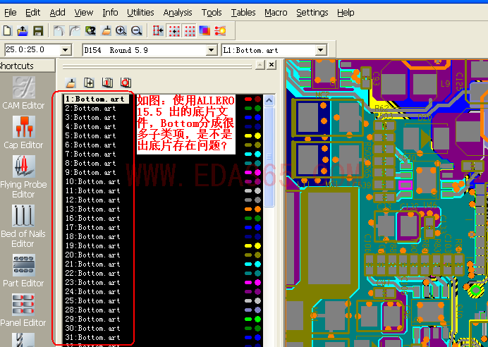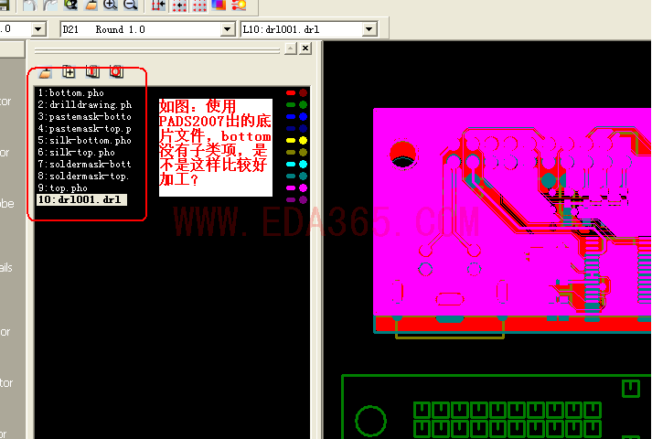 本人试过把allegro的.art文件导入到cam350发现是 复合层 结构的(比如TOP层分成很多子类项),但是pads的.pho文件是单一的(top层只有一个),