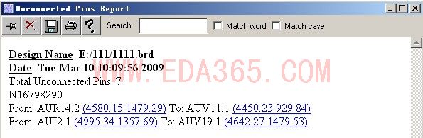 可以通过查看report -> unconnected pins report 来查找未连接的PIN.