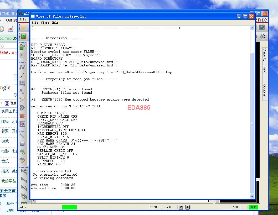 没有找到封装文件,或者网表和brd不在同一个文件夹内。