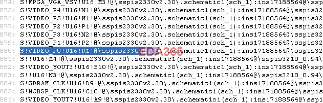 我看了一下PCB导出的pinView.dat文件,这个网表的引脚连接应当没有错误,如图2所示,VIDEO_P0连接到了U16的R1引脚。