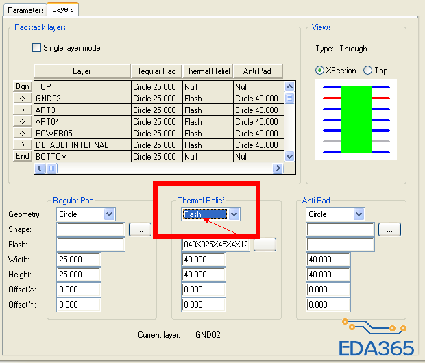 我在PCB更改的焊盘的层叠的时候,我把不用的层都设置为了null,可是为什么thermal relief 总显示flash,改不掉啊?