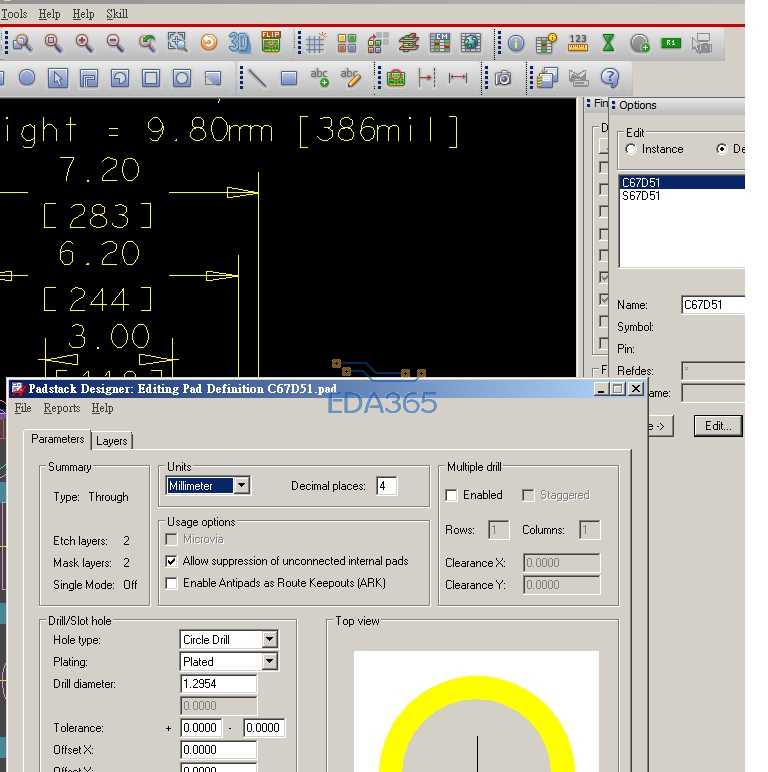 求助,如何看已做好封装里 焊盘和焊盘中过孔的大小。