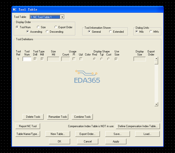1. 在Allegro 中輸出鑽孔時, 請記得把 Auto select 這個項目勾起來, 這樣會有分刀者另加入鑽孔檔中.