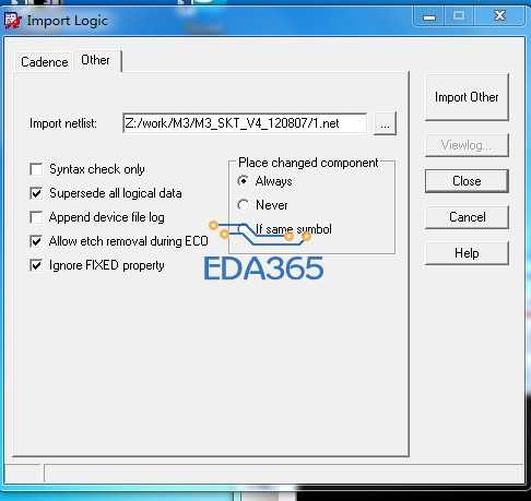 import logic----other---然后勾选supersede all logic data; allow etch removal during eco; lgnore fixed property 这三个选项