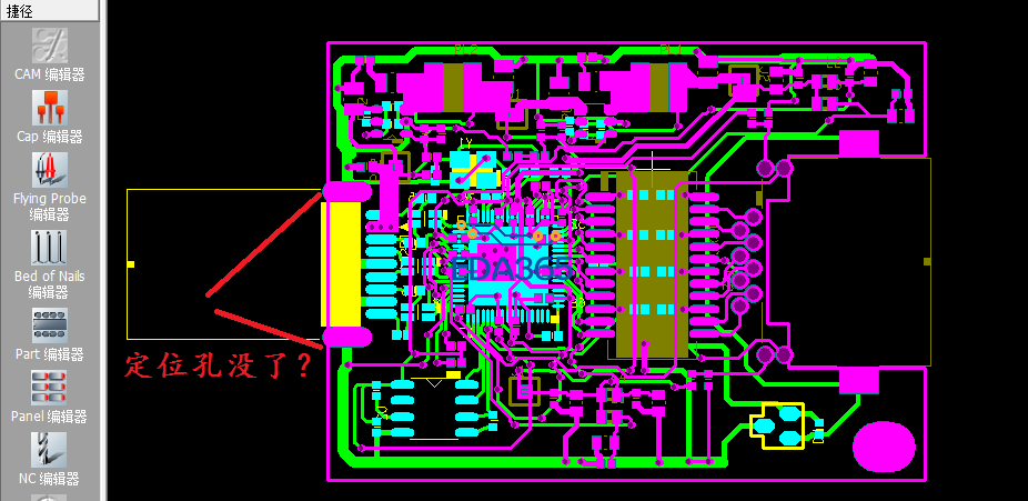 Allegro做的板子文件,导入到cam350看不到没有定位孔了?