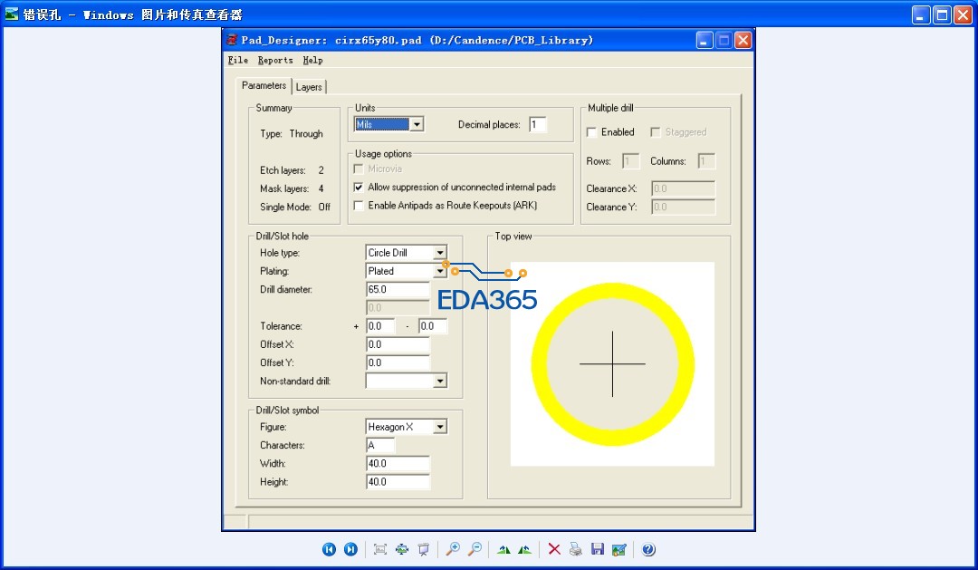 下面是我从allegro16.3上面找到的自带的过孔。它的规格是孔13mil,焊盘24mil。