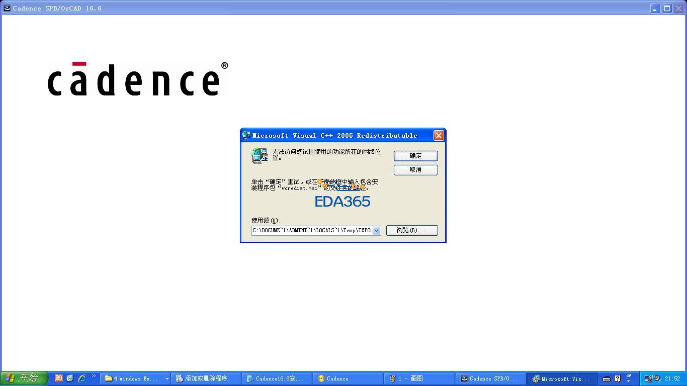 我在XP环境下安装Cadence 16.6,提示如下图,请教下大家,是什么原因呢?