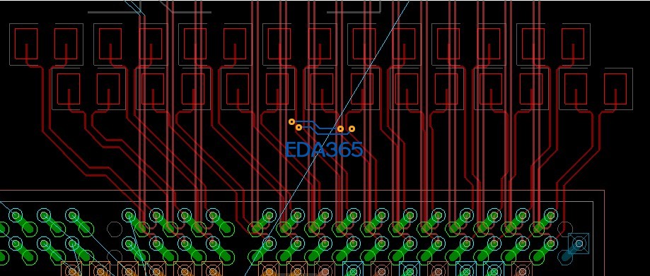 没看出个所以然,你说的图1是下面的图,但是与上面的是一样的布局,这样放置可以,只是两排电阻太近,靠下面的一排过孔没位置扇出,不过就像你说的,把握好靠近主芯片的原则就好!