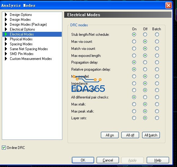 打开规则管理器Electrical Modes,下面Propagation delay和All differential pair checks