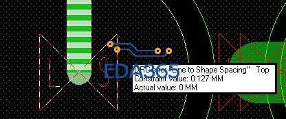 在生成Gerber文件之前,进行了DRC检查,显示没有错误。但是生成Gerber文件后,导出来就发现top层和bottom层出现LS(走线与Shape太近)的错误,如下图,DRC error:“Line to Shape Spacing” TOP