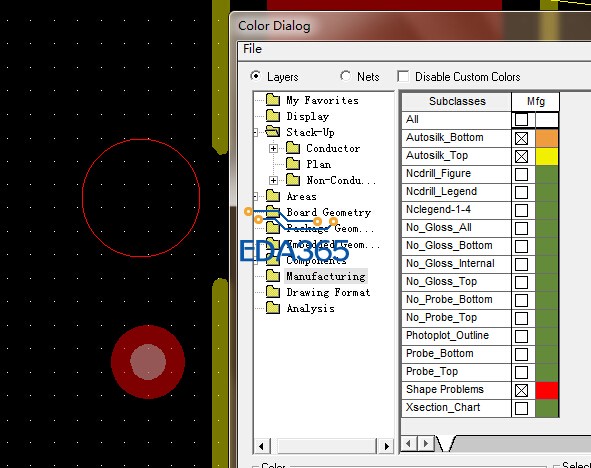 今天布了一块板子,覆铜完成之后,出丝印,结果在调整丝印的时候,发现有一个红色的小圆圈,结果发现时manufacture下面的shape problem选项打开了,而且是自动打开了,我看了下正常的板子manufacture选项下面是没有shape problem选项的,请问大神是什么原因造成了这个结果,百度也没有答案。求知道的好心人帮帮小弟我,不胜感激!下面上图