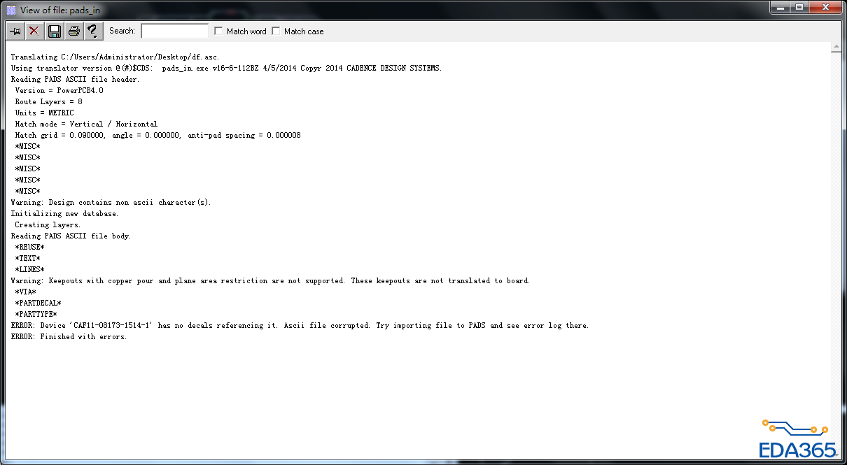 将pads9.5生成 asc4.0的文件导入cadence 出导致转换失败 请教 是什么原因