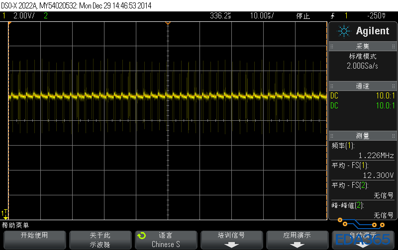 小弟在做一大功率的led驱动芯片,但是有一个很严重的干扰,在电感端的电源供电处有一个很大的干扰波形,造成PWM信号受到干扰,请前辈们帮忙看下 这个干扰是在哪里来的,如何解决比较好呢 电感我换过了 布板也改过了