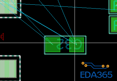 如图中大白线十字的中心交叉点。 每次移动元件时,移动的基准点总是被 Allegro 选在鼠标附近的一个栅格点。