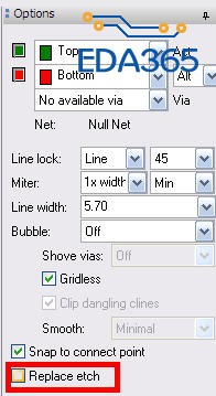 执行布线命令后,Options面板中Replace etch选项不要勾选,然后再去布线。