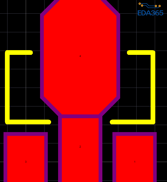 原理图画三个脚,PCB封装把2、4组合在一起,做成一个异形焊盘。