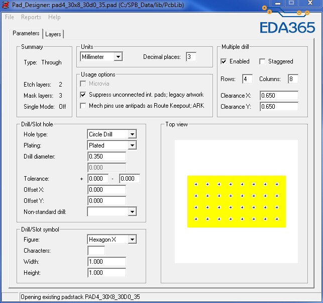 制作这个焊盘的时候可以利用pad designer 的multiple drill 制作下边的这个散热焊盘: