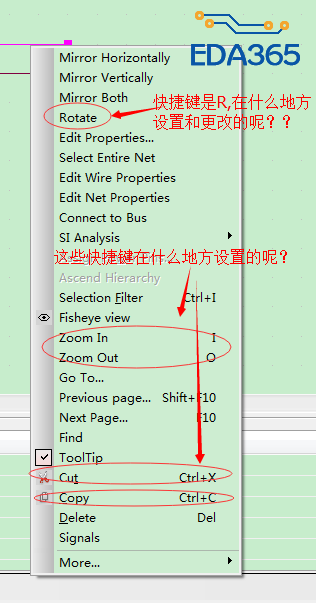 cadence【原理图orcad】右键的命令快捷键如何设置?如图所示,求高手解答。谢谢!是原理图,不是allegro,亲们。