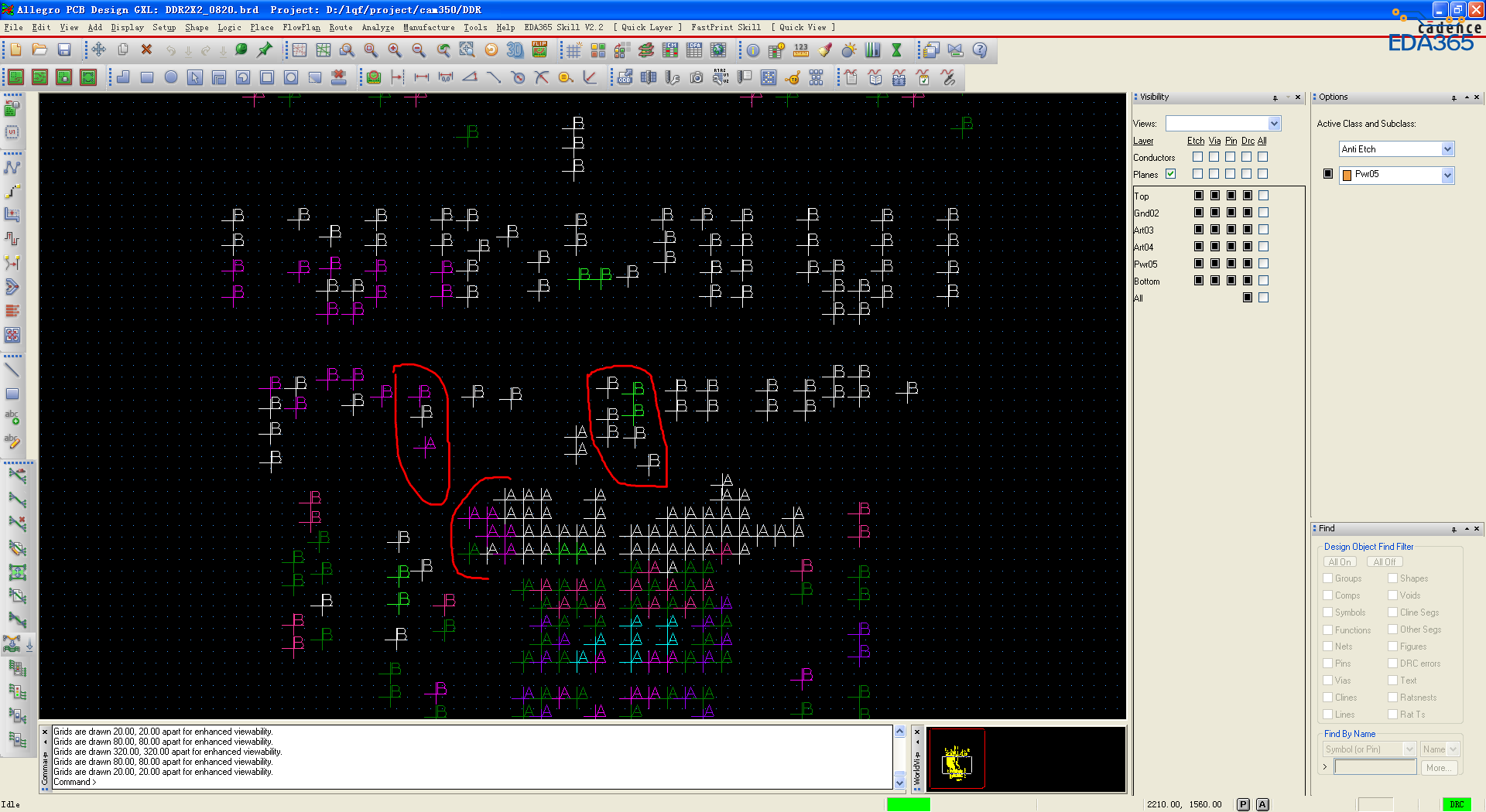 A和B是两种不同孔径的过孔,有的A(B)有小圆圈,有的却没有,很奇怪。