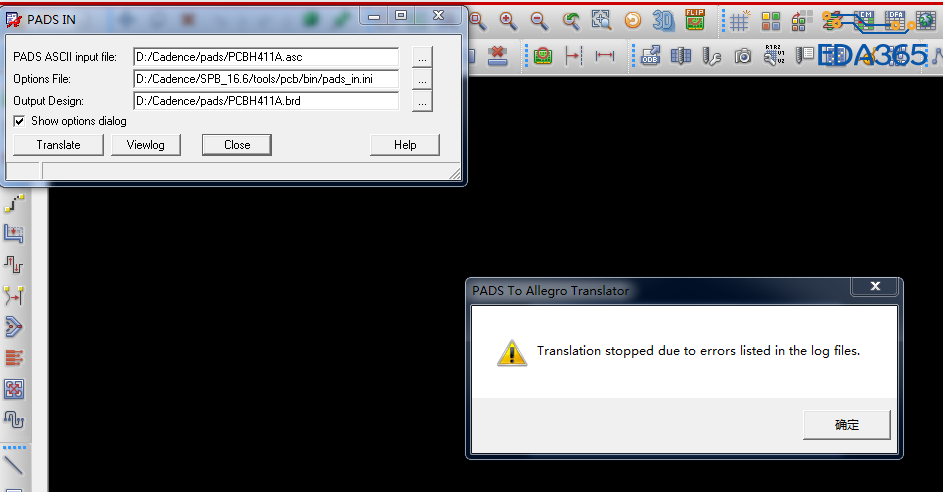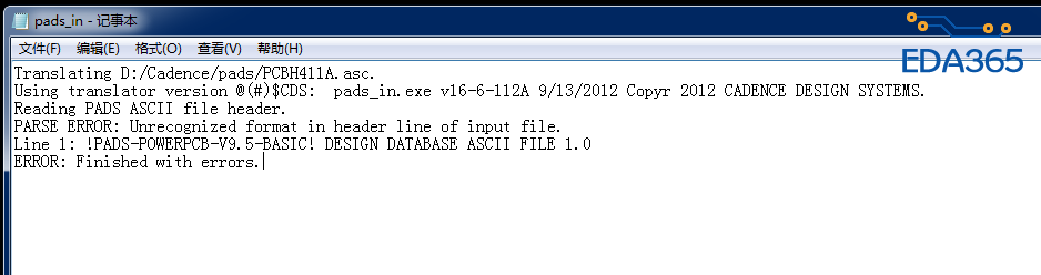 想要把pads转换成cadence,按网上指导的做,总是报错,详见图。请问到底什么地方出错了