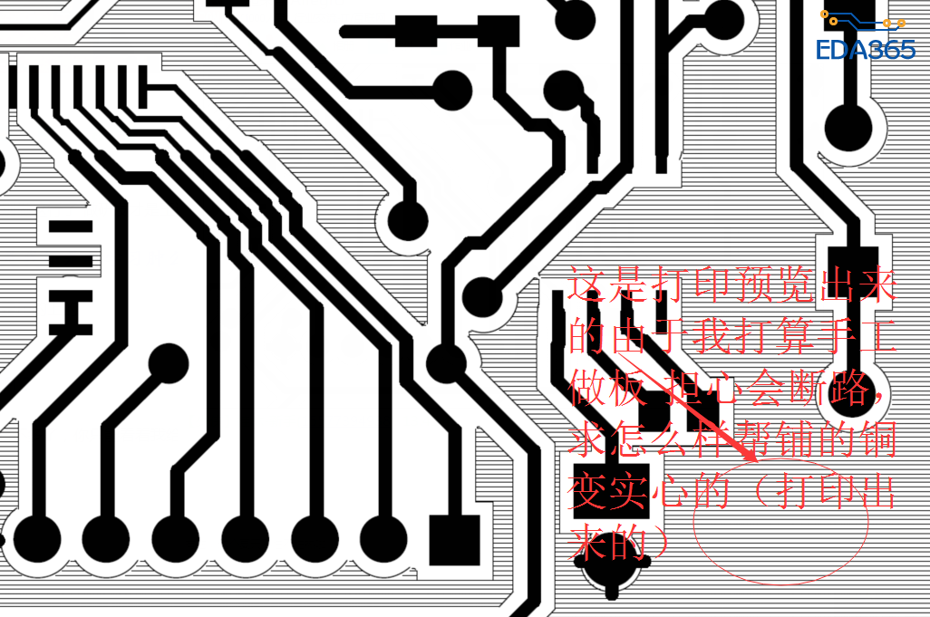 我打算做手工板 ,所以需要将pcb打印到转印纸可是我现在在allegro转印出来的pcb图铺铜部分并不是实心 的 ,我担心会断路所以求大家帮帮忙。能解决么?