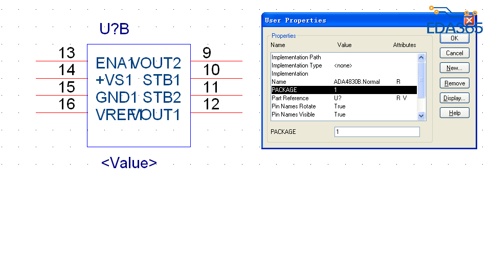 1我在建原理图库的时候,有一个分裂元件,分为U?A和U?B,在库中分别给这两个建了个package,名字都取为1,见图示。