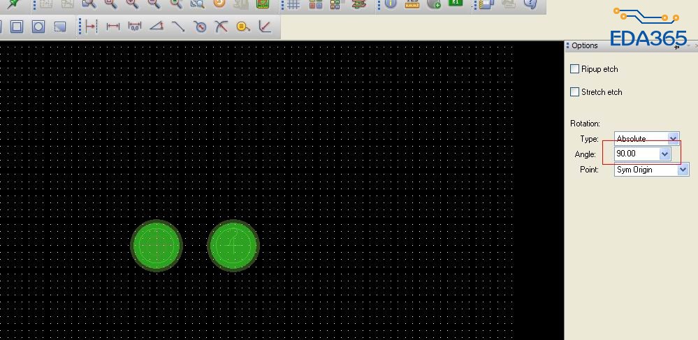 不好意思,我现在这电脑没有ALLEGRO软件。用MOVE命令,以中心抓取右边焊盘,右边的命令框里有可以设置旋转的角度。
