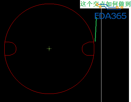 请教大侠们一个问题: 我有个圆形板子两端各有一个水平槽口,槽线与圆形边缘的相交处是直线与弧线相交。请参见附图。