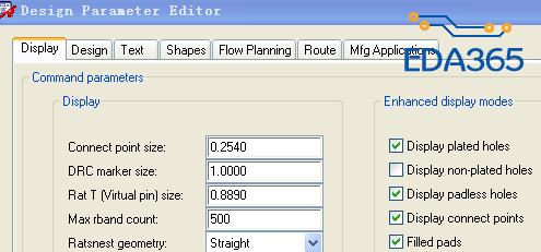 setup >> design param >> display >> filled pads