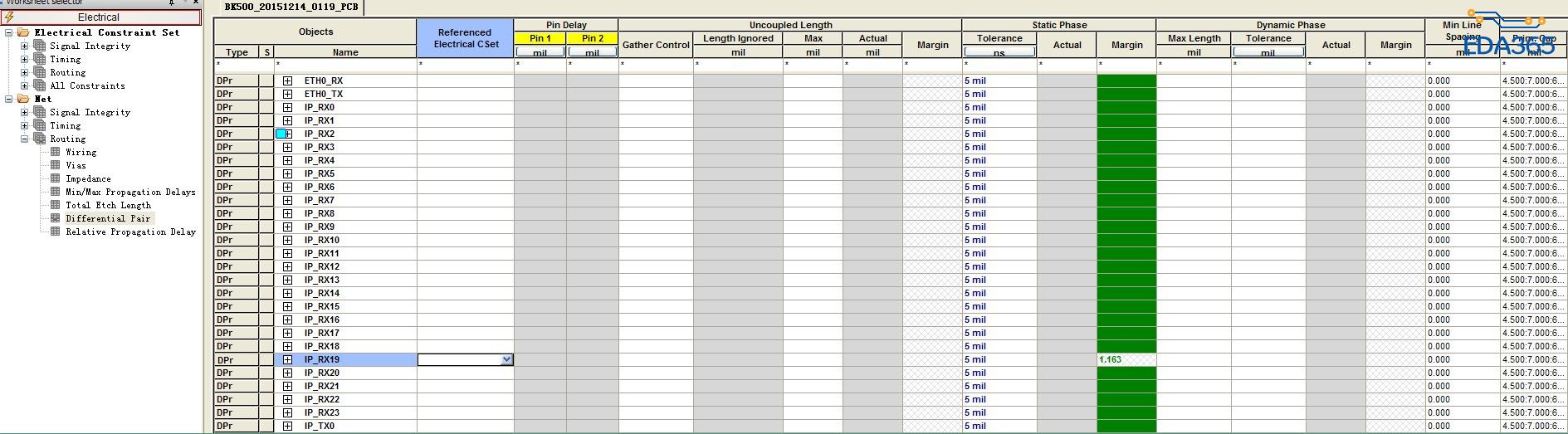 各位大神请帮忙看一下差分对与其他信号线之间的间距如何设置,我在spacing中设置了一个差分线的间距规则,却和差分对组内的规则相互冲突!