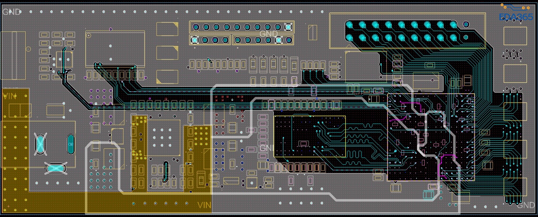 建议fpga的核心电源(vcc_1v0)铜皮加宽,目前进bga区域的铜皮太窄了,并且走的比较远。